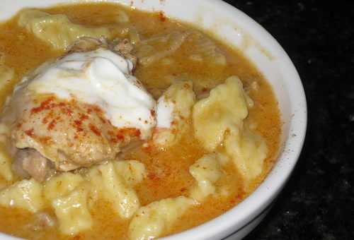 paprikas ingredients 5 chicken thighs or drumsticks 2 onions, chopped 4 C chicken broth 1 T paprika 3/4 C sour cream, plus extra for garnish 8 T margarine 6 T corn starch salt to...